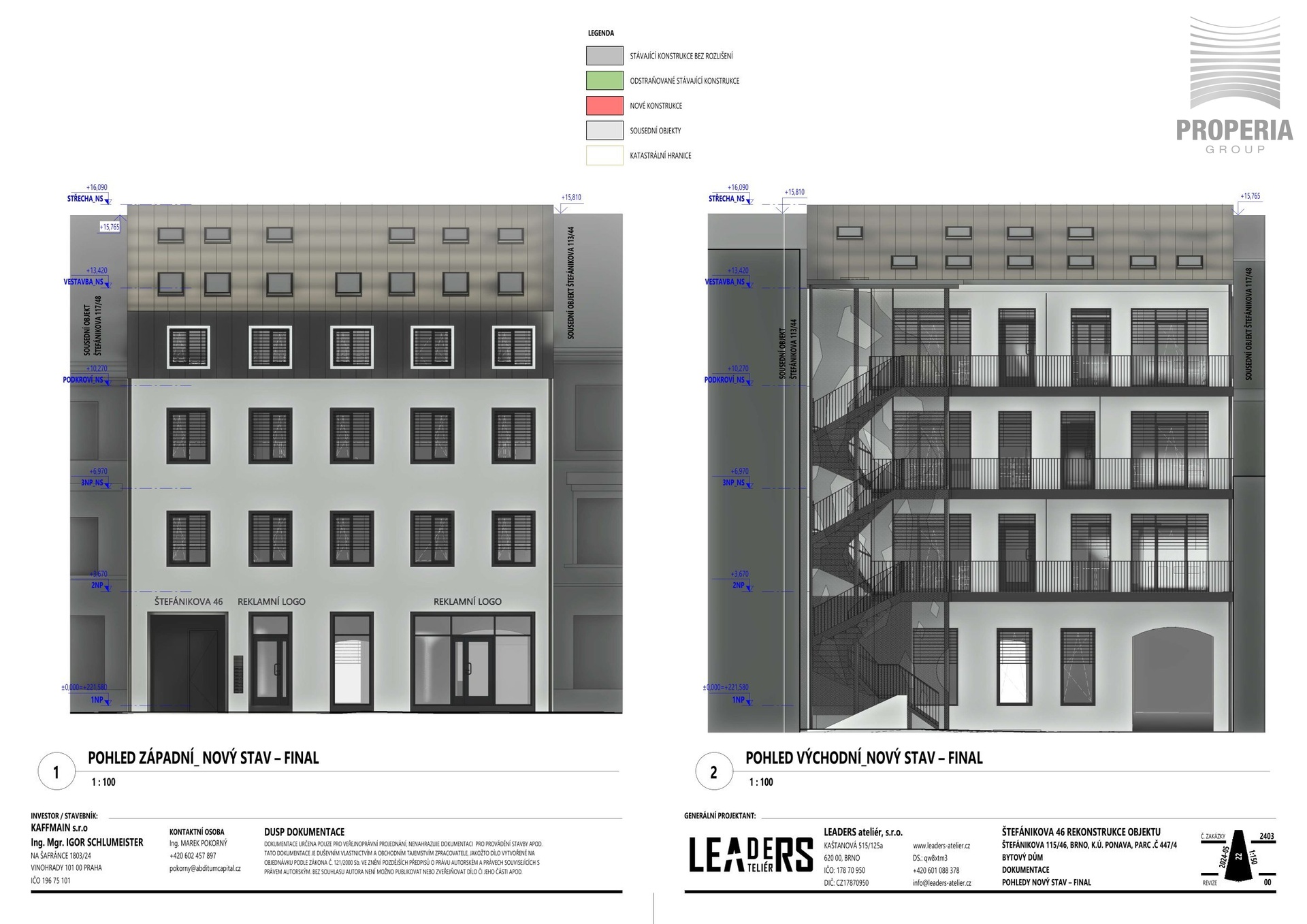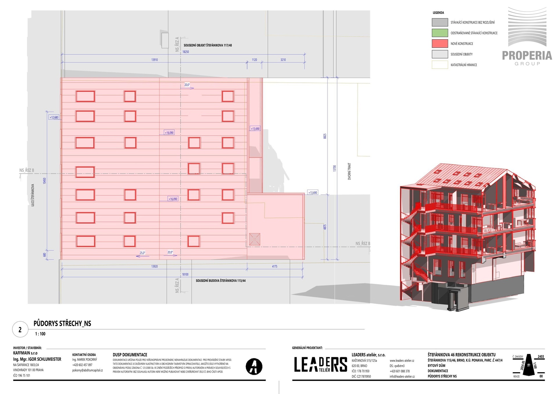Projekt počítá s citlivým dorovnáním výšky okolní zástavby a vznikem moderního městského bytového domu: