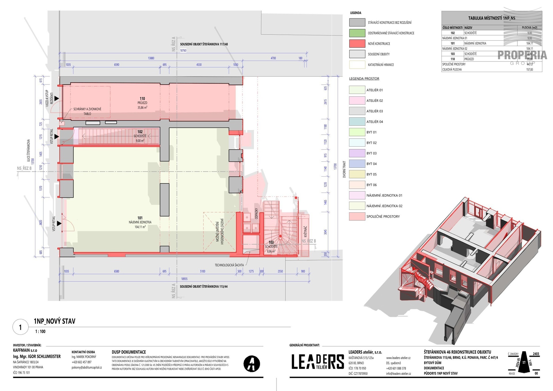* 1 retailová jednotka v 1NP s přímým vstupem z ulice