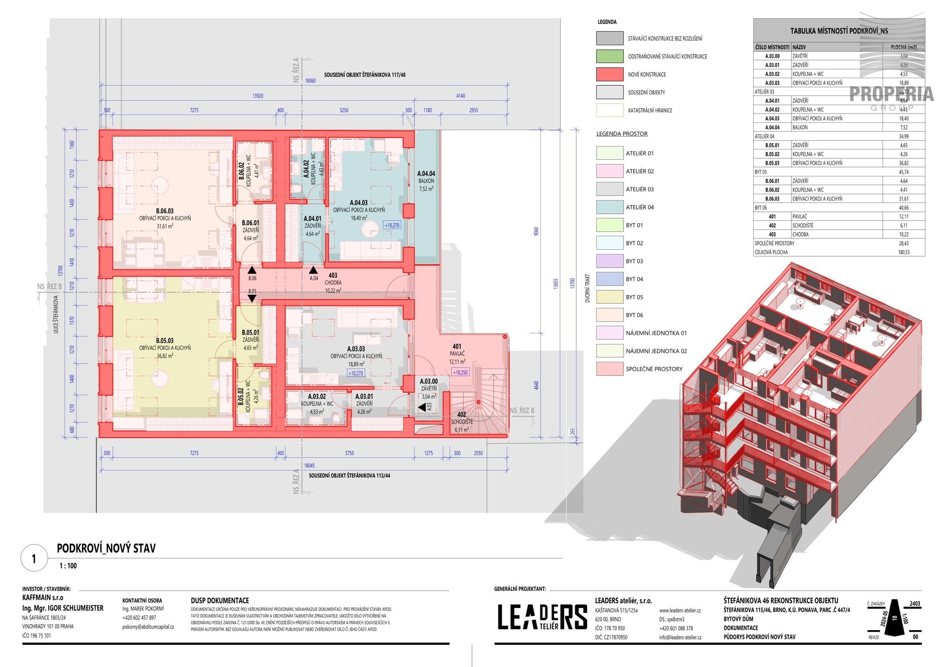 Nabízíme k prodeji projekt rekonstrukce a nástavby rodinného domu v atraktivní části Brna – Královo Pole. Projekt transformuje původní objekt na moderní bytový dům s komerčním prostorem a celkem 10 rezidenčními jednotkami.Součástí prodeje je také samostatná stavba nacházející se ve vnitrobloku za hlavním objektem, se zastavěnou plochou 166 m², která je rovněž určena k rekonstrukci a nabízí další potenciál pro budoucí využití (např. ateliéry, kanceláře, skladové prostory či další rozvoj projektu).