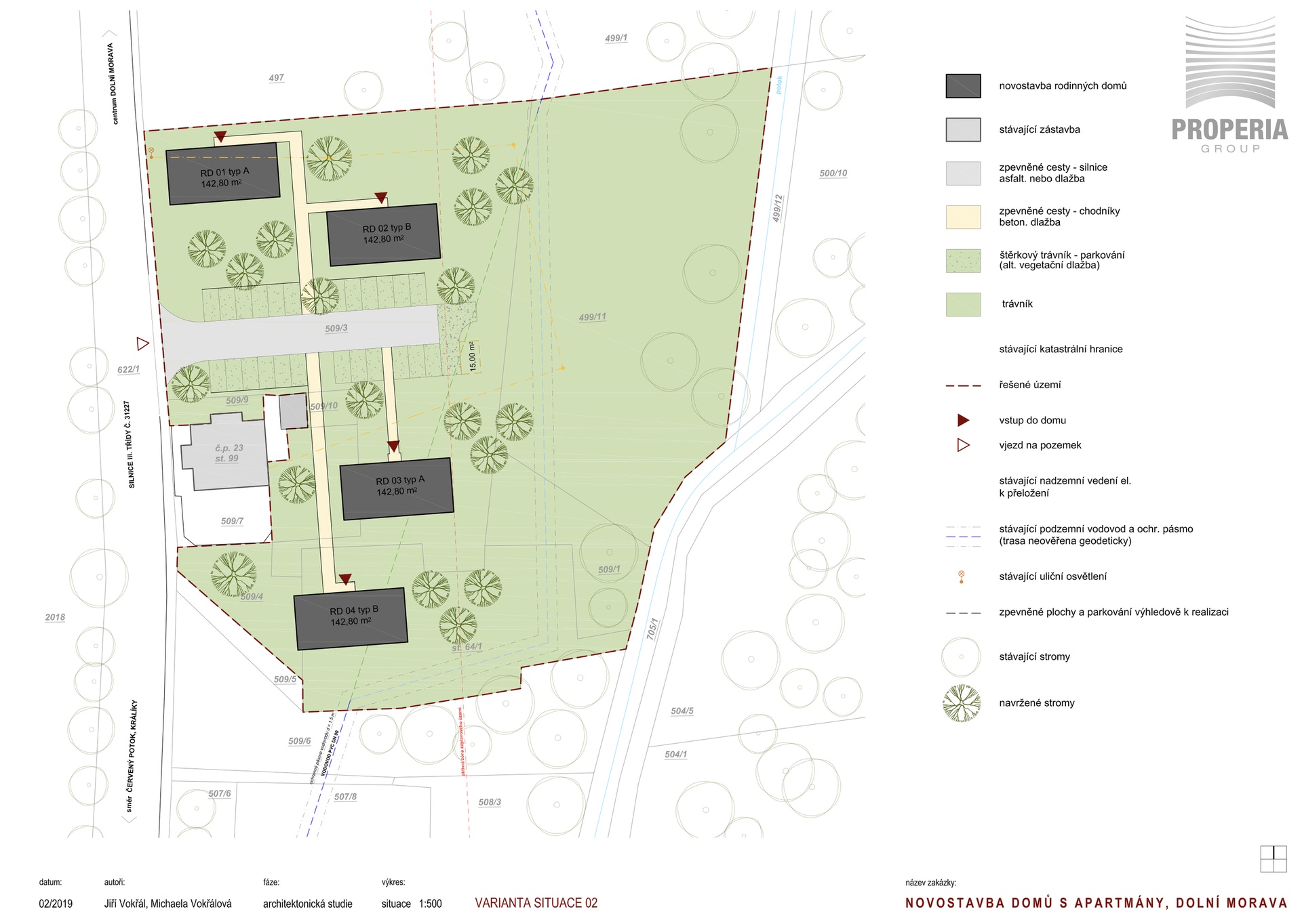 Vzhledem k trafostanici na pozemku je možné vybudování nabíjecích stanic na EV. Východní část pozemku lze pojmout jako venkovní hřiště či posezení.