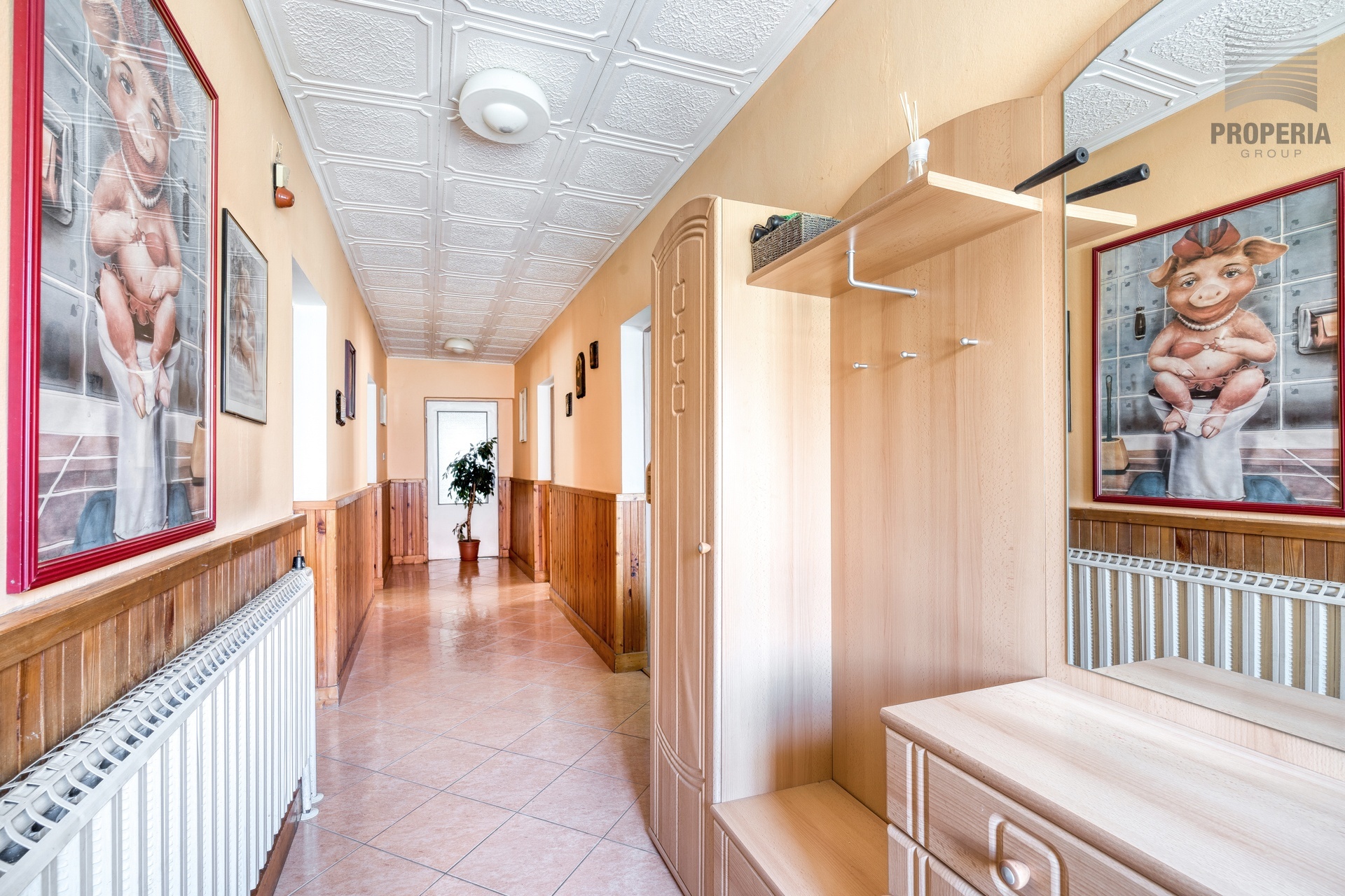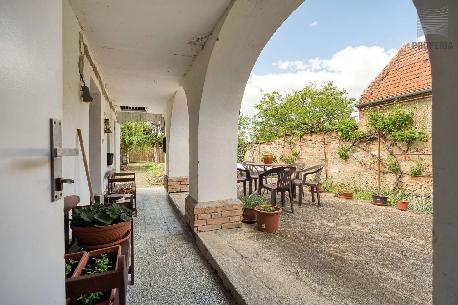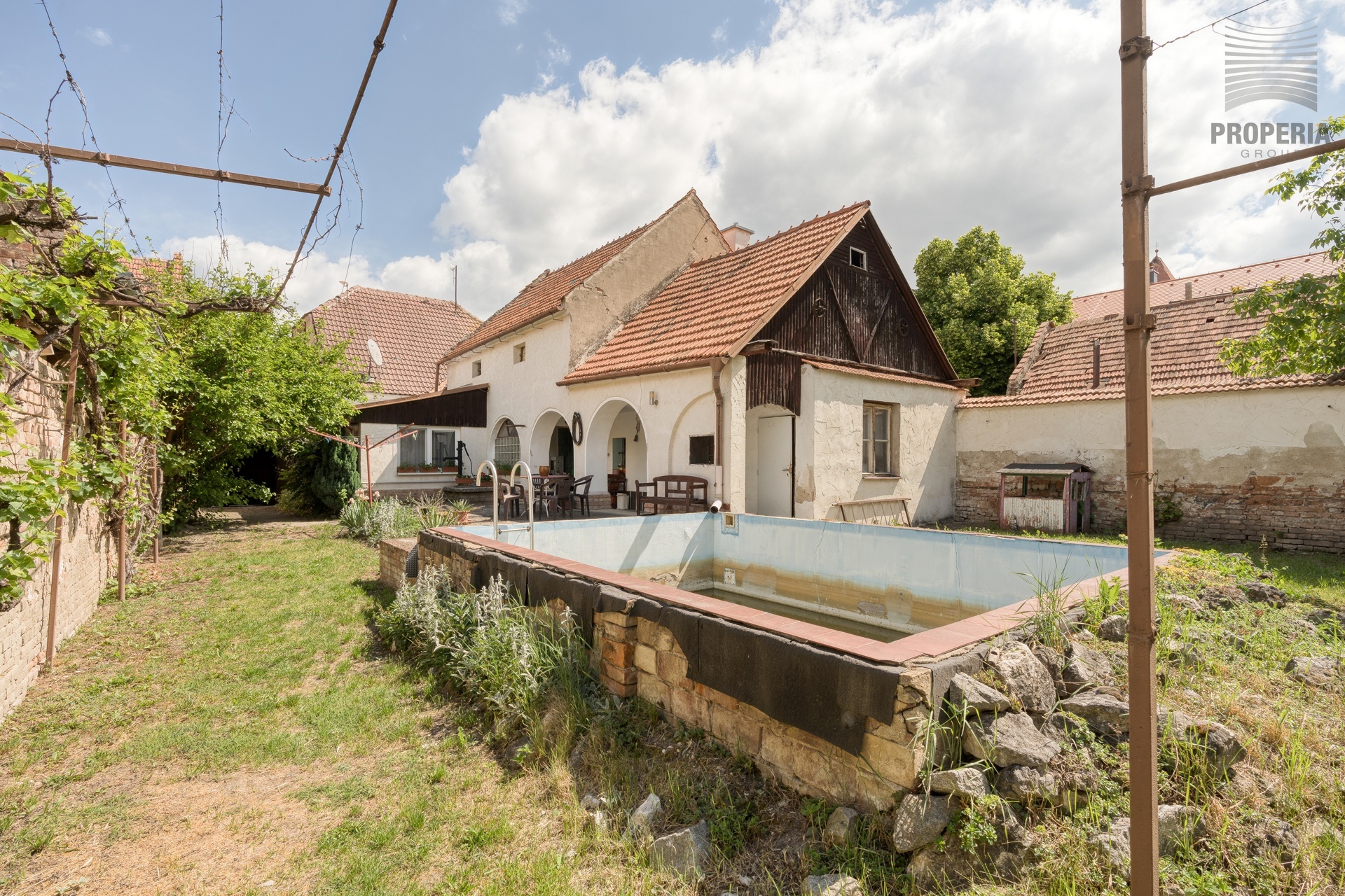 Ve výhradním zastoupení majitele nabízíme k prodeji řadový RD 4+kk s vjezdem a rozlehlým pozemkem 1430 m2 (šíře 14,3 m) v malebné vinařské oblasti v obci Perná, okr. Břeclav. Perná je vzdálená 8 km od města Mikulov a 2 km od vodní nádrže Nové Mlýny. Obec leží na úpatí Pavlovských vrchů a je součástí chráněné krajinné oblasti Pálava. Dům se nachází v historickém centru obce, je napojen na veškeré IS. Vytápění je zajištěno plynovým kotlem, ohřev teplé vody el. boilerem. Velkou předností domu je praktické dispoziční řešení (pokoje se samostatnými vstupy), rozlehlá zahrada orientovaná na jih s terasou, vlastní studnou a bazénem.Dispozice domu: vstupní chodba 13 m2, pokoje 15 m2, 13 m2, 11 m2, obývací pokoj s kuchyní 35 m2, komora 2 m2, koupelna s vanou, sprchovým koutem a WC 8,5 m2, veranda 7 m2. Dům je celý odizolovaný, vč. dvorní části, udržovaný, s možností užívání bez větších investic. Obytnou plochu je možné rozšířit o půdní vestavbu. Nemovitost lze využívat jak k bydlení, tak i k soukromému ubytování. Obec disponuje základní občanskou vybaveností a nabízí bohaté kulturní vyžití.