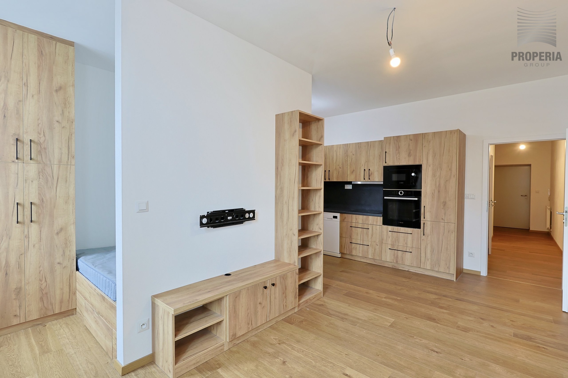 Najdete zde plně vybavenou kuchyňskou linku se spotřebiči, moderní koupelnu s prostorným sprchovým koutem a toaletou, vestavěnou šatní skříň v předsíni a v ložnici manželská postel s dostatkem úložného prostoru.