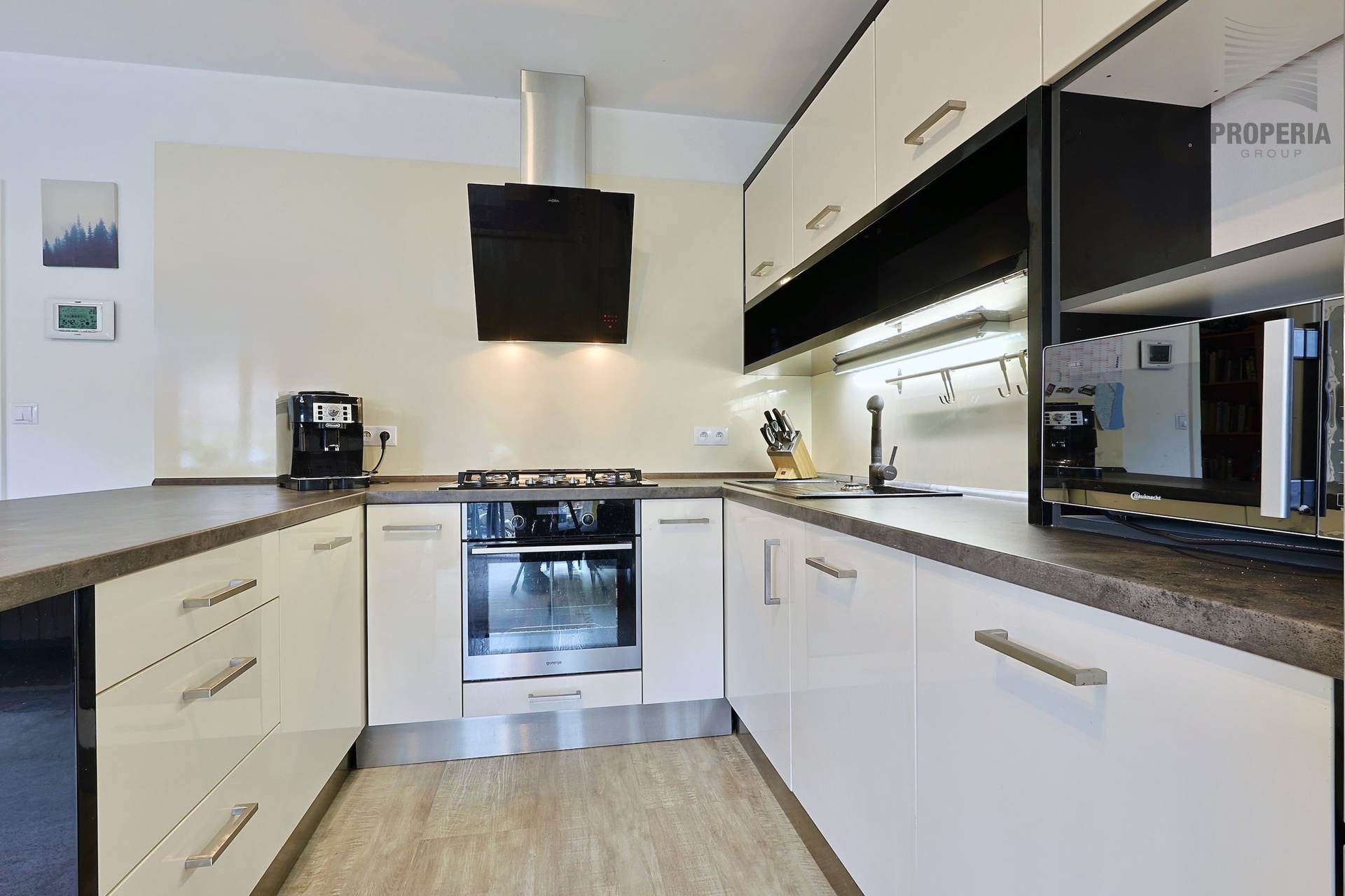 • Moderní kuchyňská linka se spotřebiči (sporák, myčka)