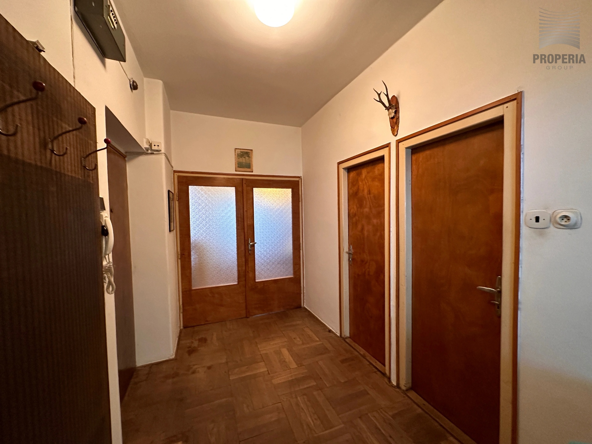 Hledáte bydlení v bezprostřední blízkosti centra města Brna? Tuto možnost a mnoho dalších nabízí byt o dispozici 3+1 na ulici Štefánikova. Byt je družstevní a nachází se ve 3NP cihlového domu s výtahem.Byt je určen ke kompletní rekonstrukci. Velkou výhodou jsou nízké náklady na bydlení, které každý jistě ocení. Dispozice bytu: při vstupu do bytu se ocitnete v prostorné chodbě (8,80 m2) ze které je vstup do koupelny (3,80 m2) samostatné toalety (1,60 m2) a do kuchyně (13,70 m2) . V kuchyni je spižírna (1 m2) s menším pokojem(5 m2), který lze využít jako technická místnost (dříve pokoj pro služebnictvo), a vstup na balkon který se situován do vnitrobloku ulice Dřevařská. Z chodby se také dostanete do prostorné haly, která je vhodná pro trávení společných chvil, tudíž se dá využít jako obývací pokoj (15 m2), ze které jsou vstupy do samostatných pokojů (23,25 m2 a 24,15 M2) a na balkon (3,10 m2), který se situován do ulice Štefánikova. K bytu náleží sklepní kóje (2,40 m2).