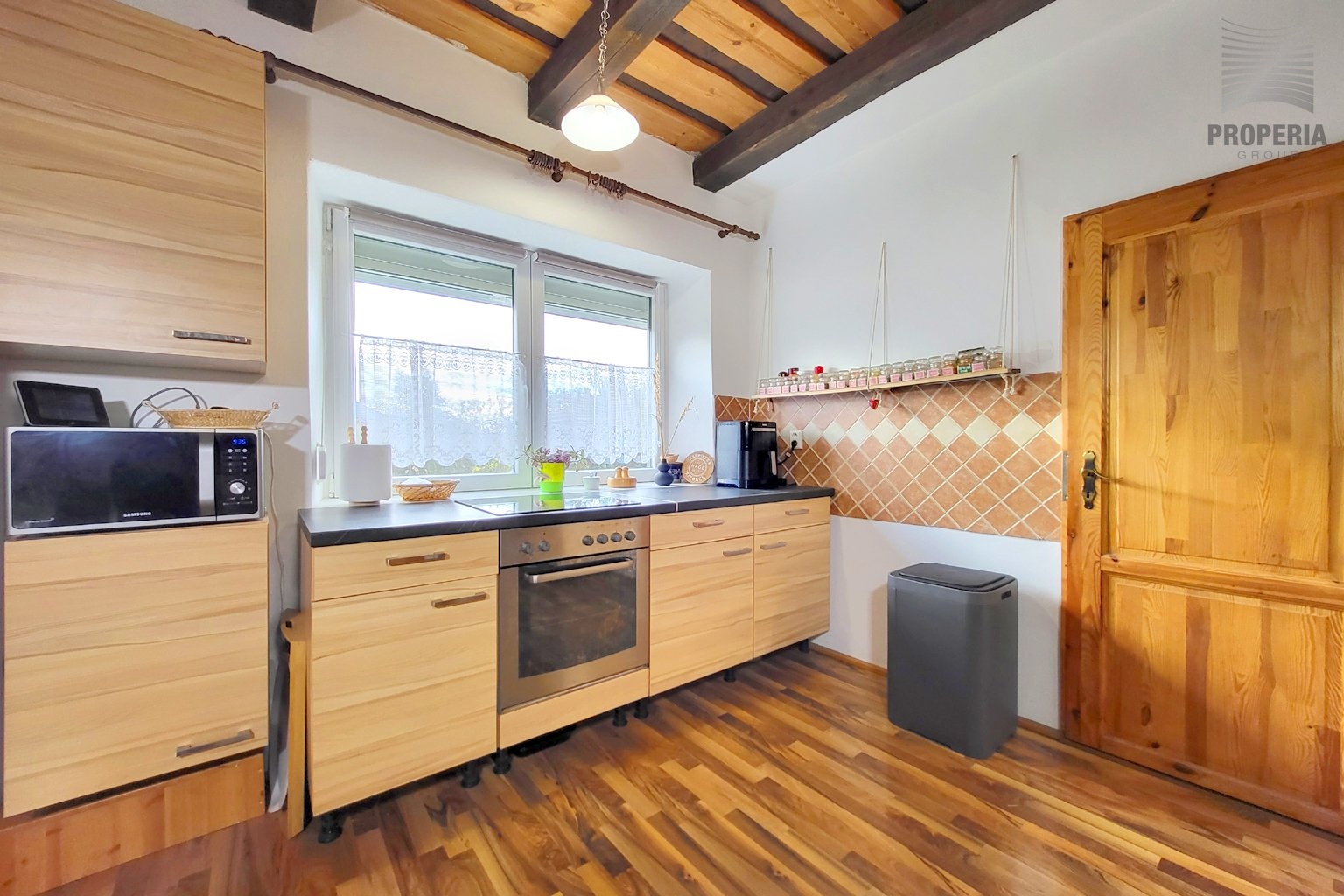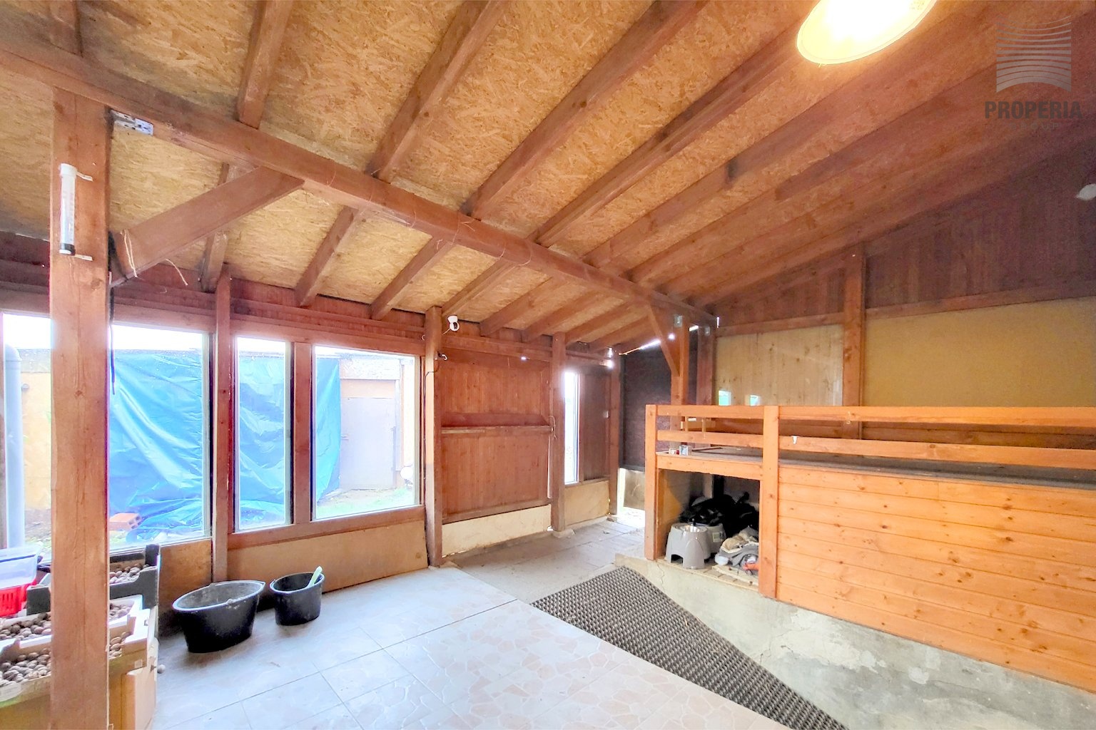 Při návštěvě domu Vás zaujmou trámové stropy, které jsou z části původní. K domu patří zahradní domek s posezením, dílny, krytý prostor pro vaše auto a i na domácí zvířátka je zde také myšleno.